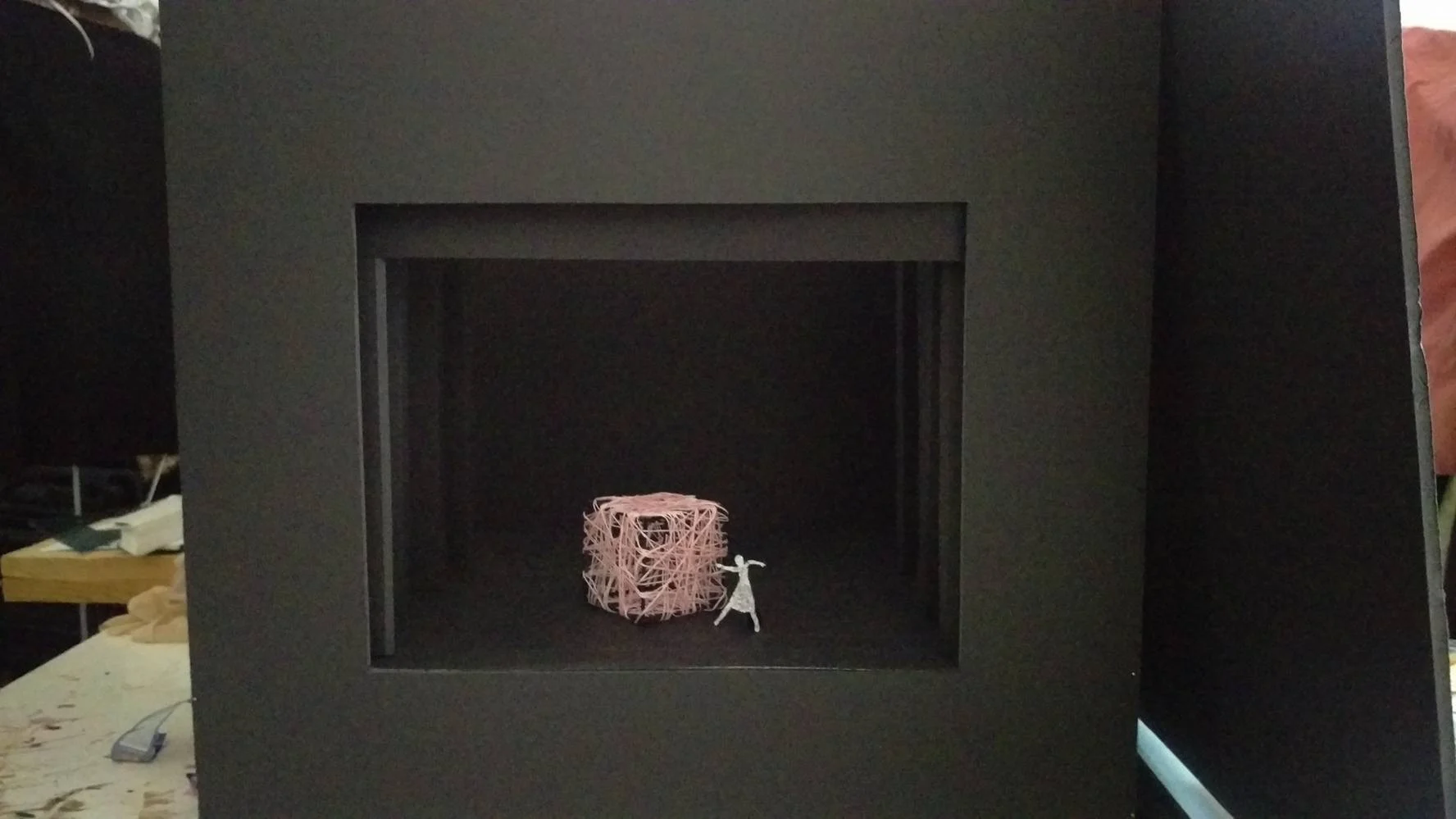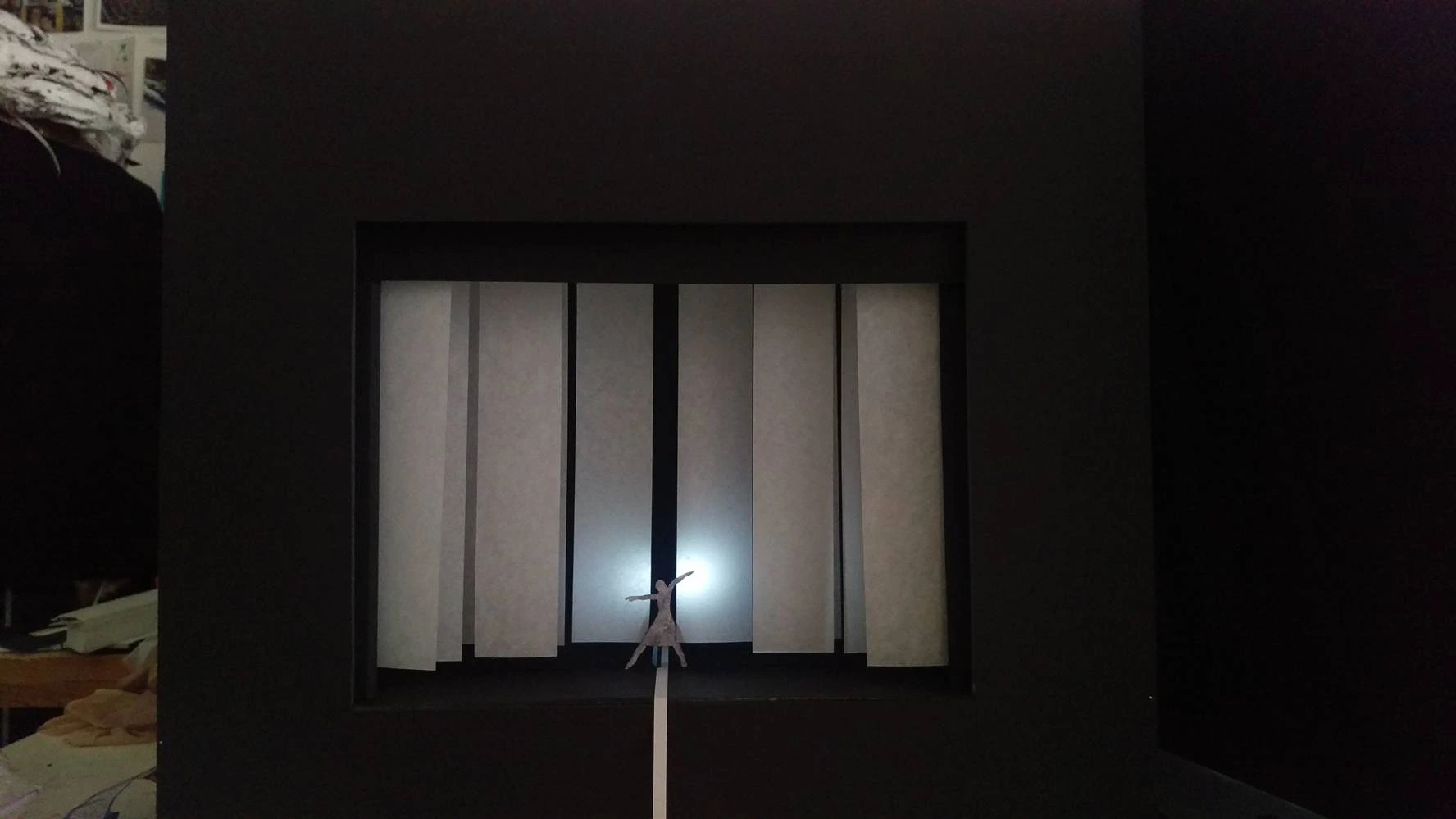 Colaboramos con la escuela de danza Contempodanza para realizar maquetas que llevamos a cabo en el teatro alrededor de sus coreografías de último año.